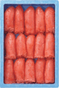無着色辛子明太子 上切(切れ子)840g【辛子明太子かねふく福岡】産地直送 価格: 5,980円 レビュー評価: 4.87 レビュー数:15 商品説明 品 名 辛子明太子 上切840g (12?21本) 漬け込み 無着色 規 格 簡易化粧箱入り(約280g×3袋) 製造工場 かねふく博多工場 賞味の目安 冷凍3ヵ月(解凍後冷蔵で8日間) 商品説明 形がちょっと切れている上切れ子ですが 味も、ボリュームも、大満足の明太子です! 原材料 すけとうだらの卵(米国、ロシア)、食塩、醸造調味料、果糖ぶどう糖液糖、唐辛子、調味料(アミノ酸等)、酸化防止剤(ビタミンC)、酵素、発色剤(亜硝酸Na)、(原材料の一部に小麦・大豆・魚ゼラチンを含む) 辛さの比較(当社比) ★★★★★明太子が大好きな方にぴったりのお徳用です。製造過程で切れた辛子明 Supported by 楽天ウェブサービス |
